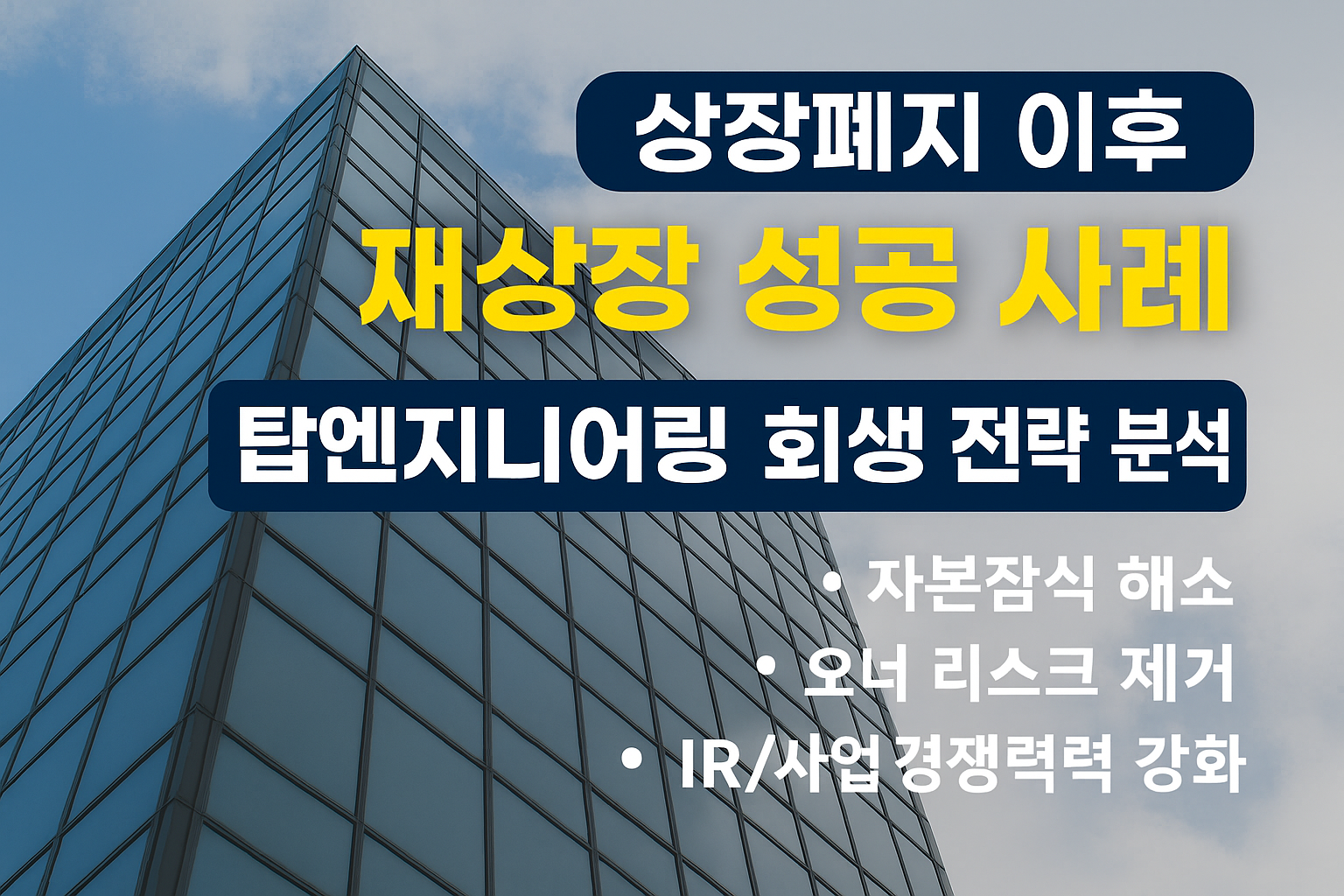 📍 한일진공에서 탑엔지니어링으로 회생한 실제 재상장 사례 분석. 자본잠식, 감사의견 '한정' 극복 후 거래소 신뢰 회복 전략까지 정리합니다.